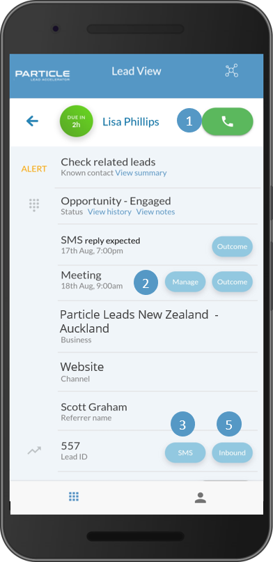 Inbound contact: It’s also key to capture contacts made by the client. This link (3) helps you capture their calls, SMS, emails or walk-ins. See Inbound contact for more.