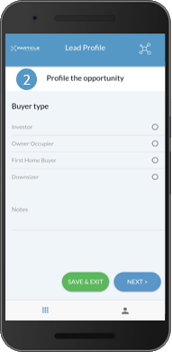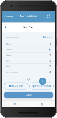 1. Profile Client Button – this appears in outcome screens or next action screens when you’re in contact. It triggers a series of questions with drop-down answers.